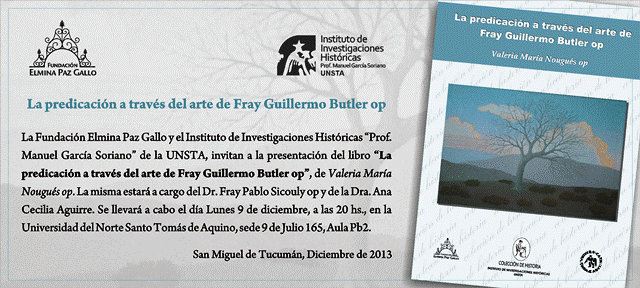 El día 9 de diciembre, la Fundación Elmina Paz Gallo y el Instituto de Investigaciones Históricas “Prof. Manuel Garcia Soriano” UNSTA-Tucumán, realizaron la presentación del libro, “La Predicación a través del arte Fray Guillermo Butler OP”, escrito por la Hna Valeria Nougués OP, la misma estuvo a cargo de Dr. Fray Pablo Sicouly OP y …